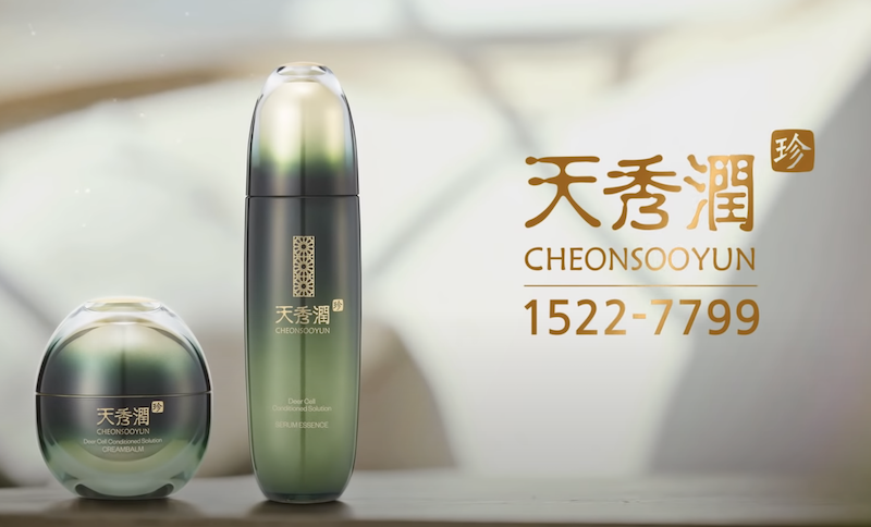 천수윤 진 세럼 에센스 , 크림 밤, 크림 밤 마스크가 가장 메인 세 가지 제품입니다. 모든 제품에 녹용 중간엽 줄기세포 배양액이 포함되어 있고 적송 소나푸잎 추출물이 함유되어 있습니다. 그로 인해 미백, 주름개선 기능과 피부자극 테스트까지 완료된 빋을 수 있는 제품입니다. 거기에 데일리 클린저로 화장품을 지울 때 스는 클렌징 스크롭폼도 판매되고 있습니다.